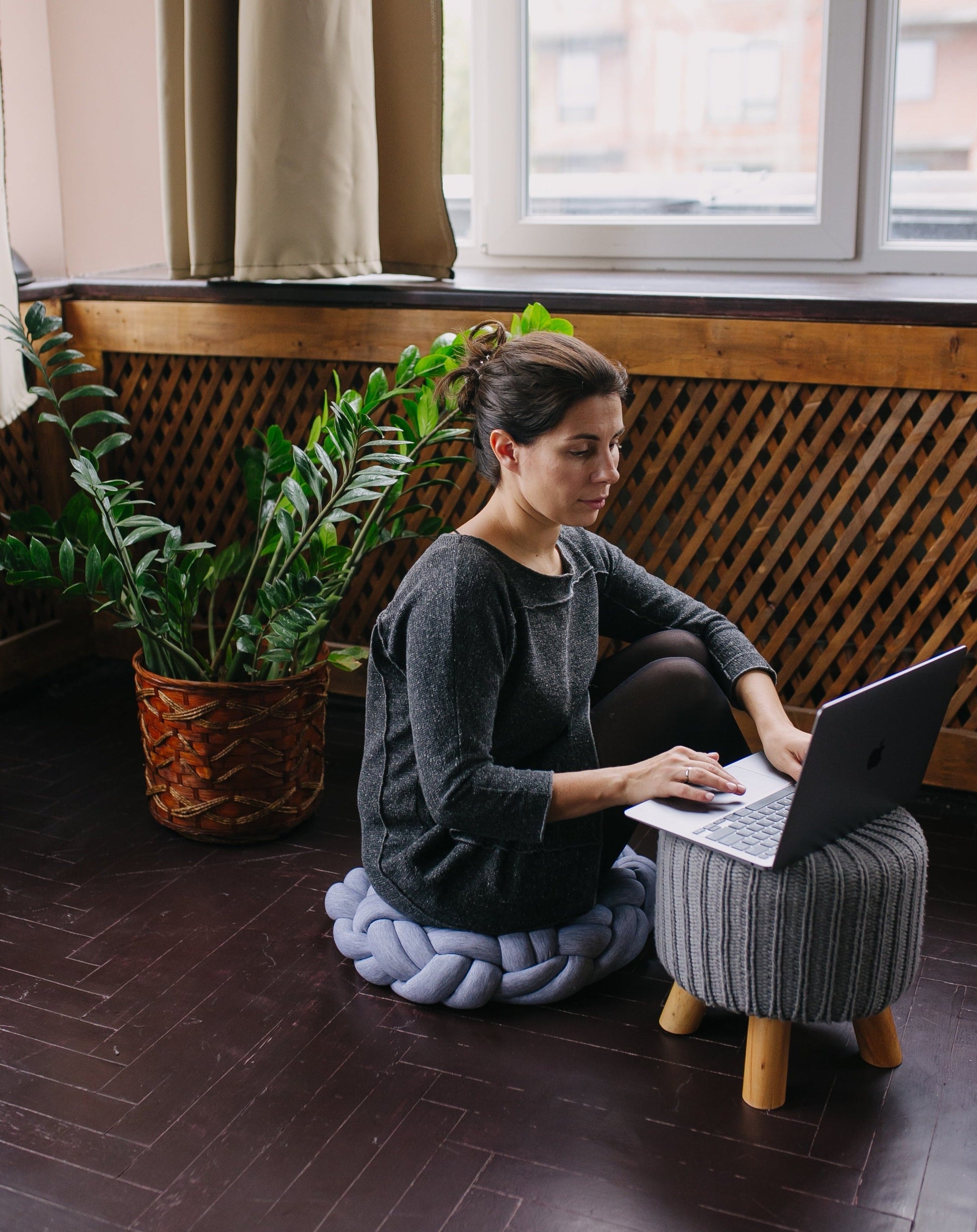 Our floor ottoman can be transformed into a braided rug, that makes the idea of floor cushion even more practical and sustainable in use. You will get two pieces of furniture in one.